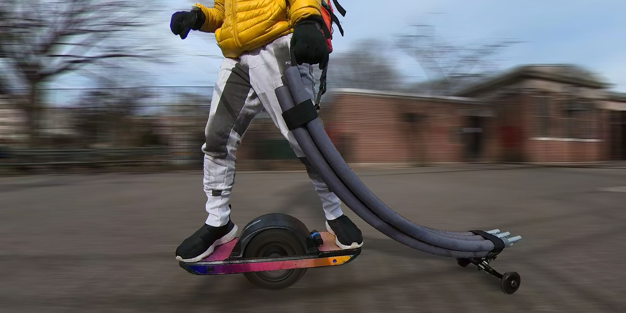 Ever since I started playing with this big metal apparatus, I've been looking for the easiest way to move it around. I live in New York City, so it's not like being in the suburbs with a house where I easily load my wheel into the car in the garage and drive to a parking spot right in front of the gym. I need to move through an urban environment in whichever way is most appropriate, which means any combination of walking, subway, bus, car, bike, or my current favorite, Onewheel.