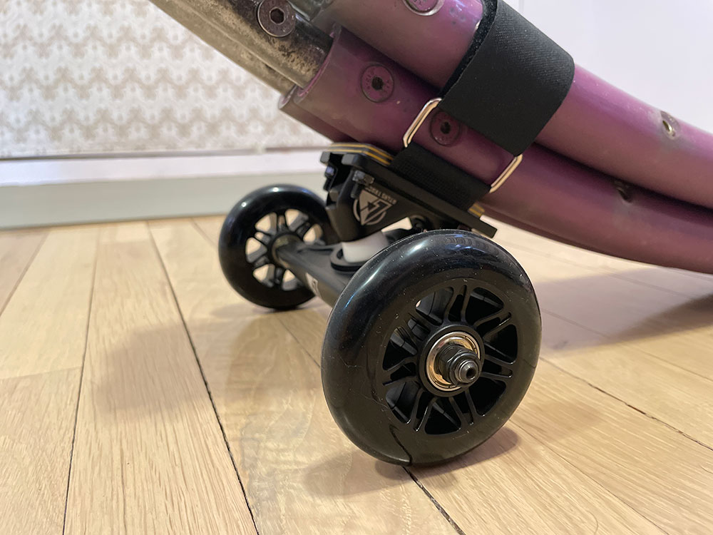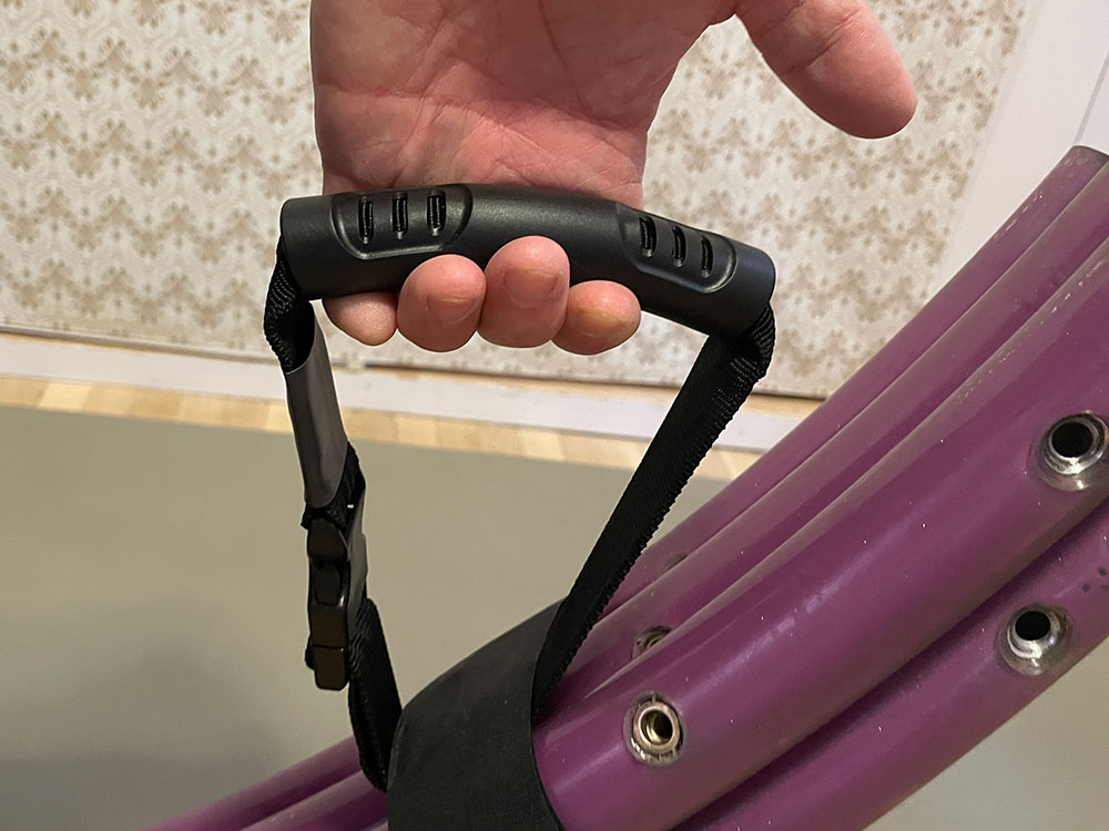 Wheels4Wheels was developed for my particular needs, but will serve just about any Cyr wheeler well. I wanted large diameter inline skate wheels and a wide stance for smooth rolling, especially at higher speeds over rough roads. I needed wide cinch-style straps for a good tight grip on the wheel. A strong, comfortable handle with adjustability was also a must. And no cutting corners, quality parts throughout, because we circus folks will find a way to destroy cheap crap, or anything designed to carry things that weigh much less than a Cyr wheel (archery bow cases, snowboard/ski bags, etc).