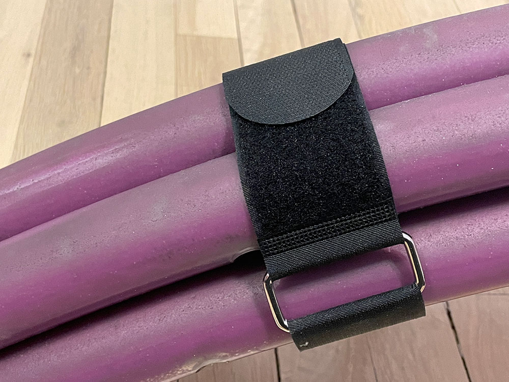 2" wide velcro will not loosen and holds wheel sections together in a stable bundle.